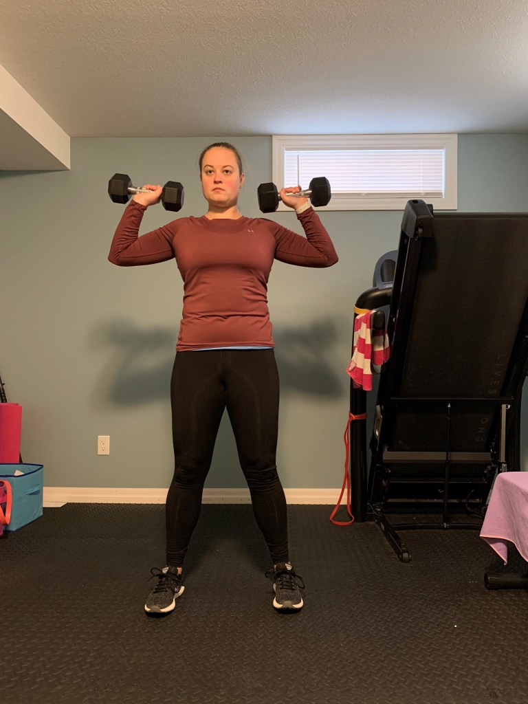 Welcome to the first blog post of 2022. That is a bit crazy for me to say if I’m being honest but nonetheless here we are. Today I’m sharing a full body dumbbell workout with you that you can do from home given that the gyms have shut down here in Ontario once again. If you don’t have weights at home cans or water bottles can work really well for some of the upper body exercises and a backpack full of books can be a great alternative for some of the lower body exercises.