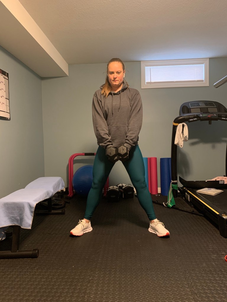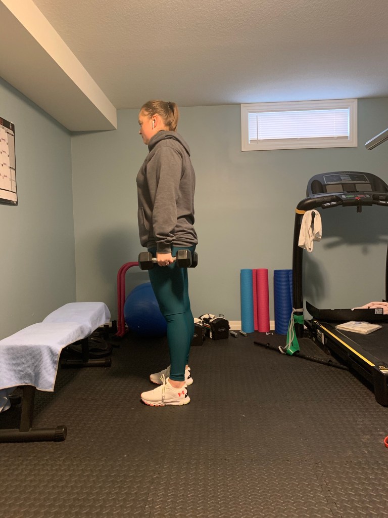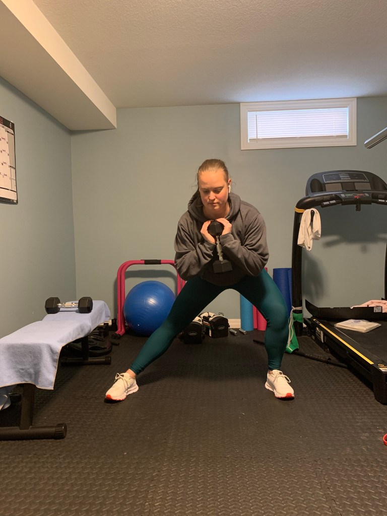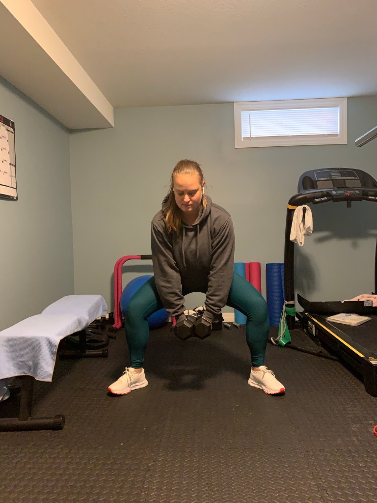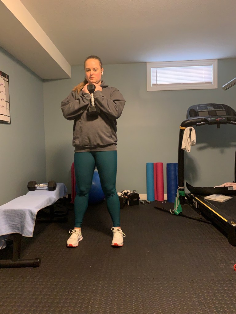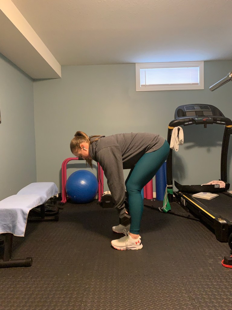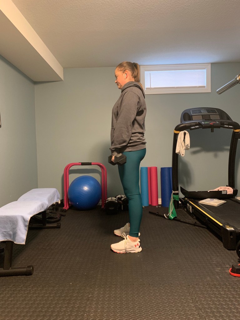 When you don’t have as much weight it can be useful to increase your reps slightly. Try 12-15 reps of each exercise for 3-4 sets.