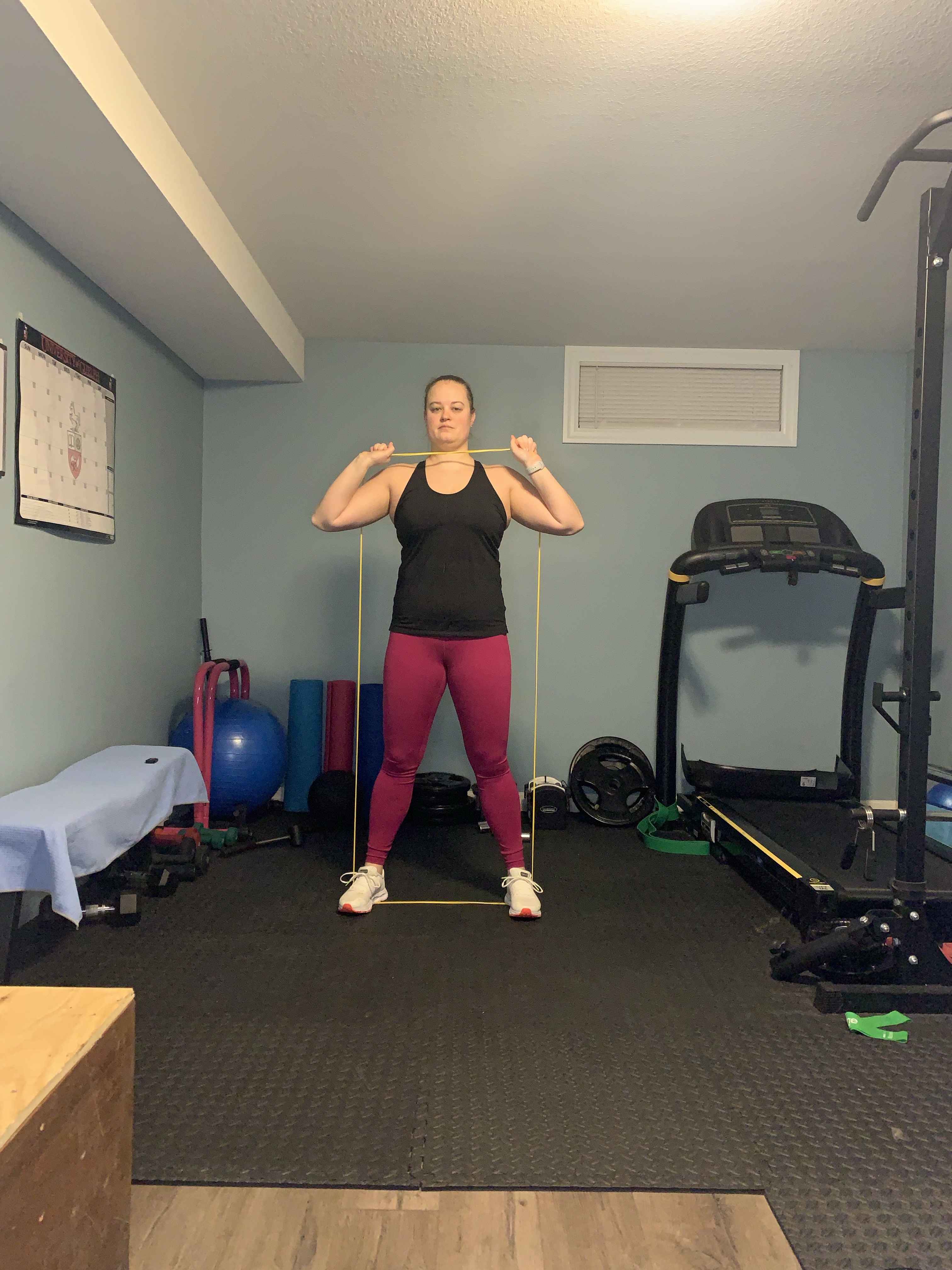 Grab yourself a set of dumbbells and some bands for today’s workout! Rep ranges are given in brackets. Complete 2-4 sets of each exercise.