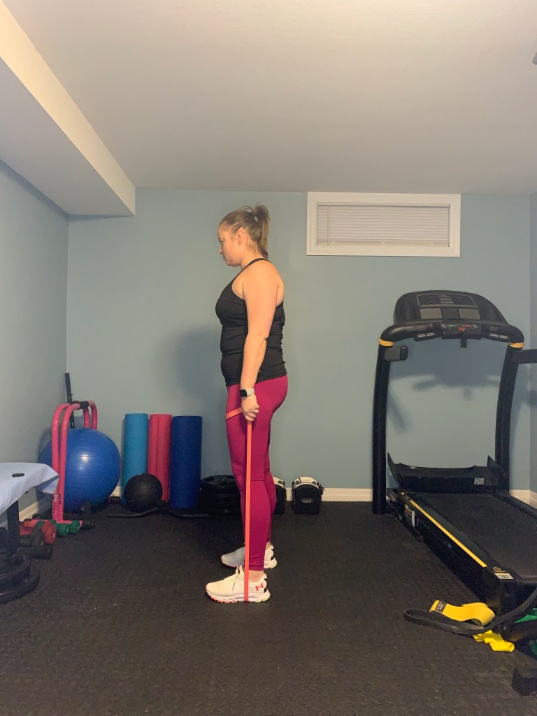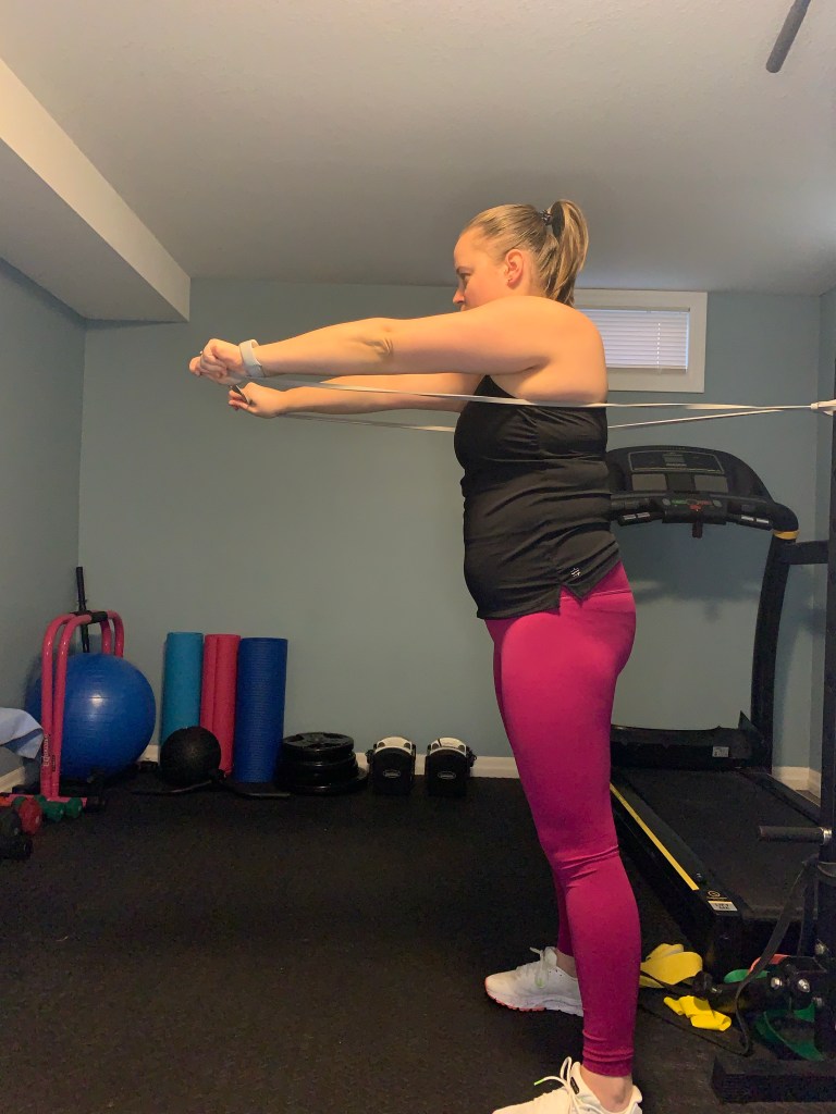 If you travel a lot or are looking to build a gym in a small space bands can be your best friend. Today I’m sharing with you a full body workout you can do with only bands. Take this one on the road with you! Complete 12 reps of each exercise and 3-4 sets depending on the time you have available.