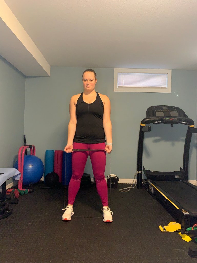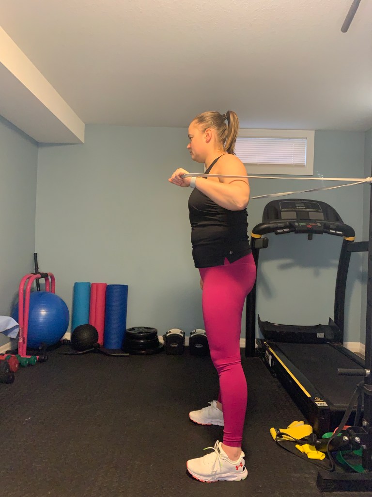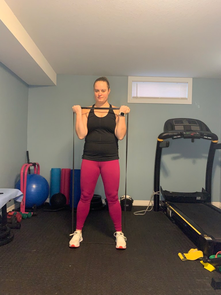 I love using bands to introduce some variety into my upper body workouts! While I love training with dumbbells and barbells adding bands can be a great way to change it up a bit. They also give you an opportunity to mimic some cable exercises at home that you may otherwise not be able to do at home. Check out this upper body banded workout. Reps are beside the exercise. Complete 3-4 sets of each exercise before moving on to the next one.