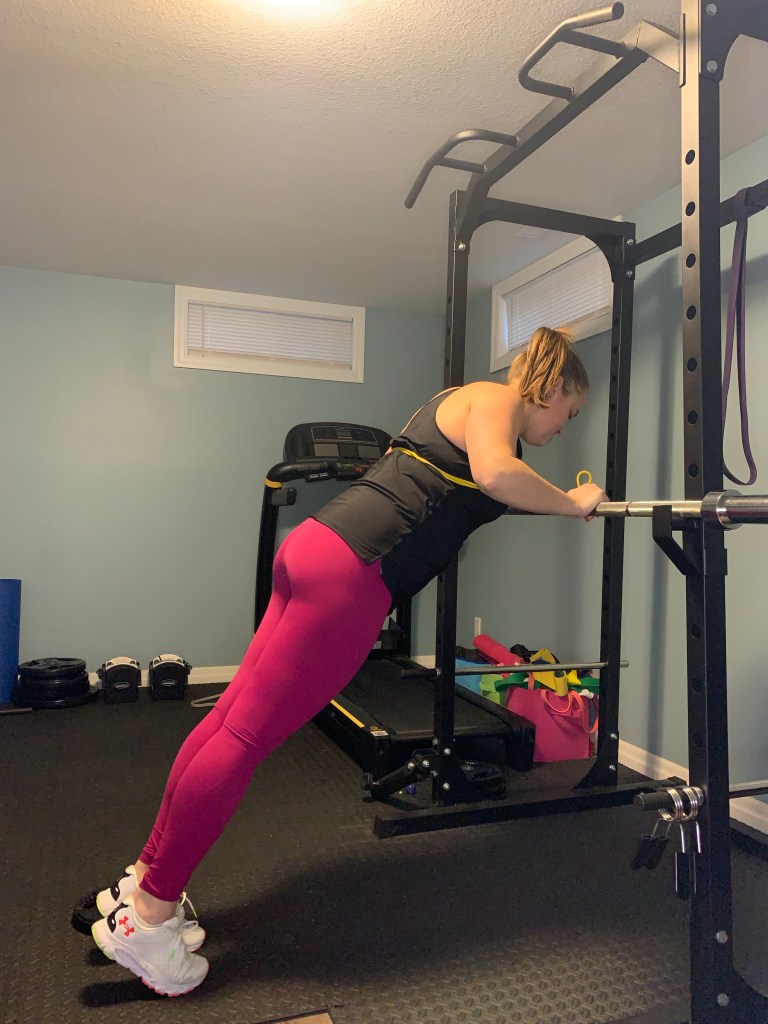For those of you who have a bit more room to play with, you can start adding things like a rack, barbell, plates, benches, ect. These are by no means something you have to have, but I love my rack and it opens the door to more exercise options. Again, these are a little more costly upfront, but I honestly use them so frequently and I don’t have to pay for a gym membership (ever) so for me it’s 100% worth it. The barbell and plates I got second-hand off marketplace for an insane deal from someone who was moving and had to get rid of stuff (they may have gotten use out of them but you couldn’t tell…they looked brand new). There is so much fitness equipment being sold second-hand now and a lot of it can be great, but watch pricing (check new stuff to get ideas on what’s too much). A lot of people who are selling fitness equipment typically buy it and don’t use it much (which is what leads them to sell it), so typically it isn’t super overused. I wouldn’t recommend buying bands second-hand, but pretty much anything else can be a great option if you can get it at a good price.